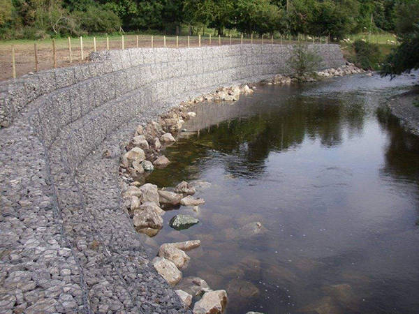 河道石籠網(wǎng)主要用于引導河流水,河流一般會順著固有的河槽流動,河道可能有自然形成的彎曲的河道,如果發(fā)生洪水,水量巨大,水流湍急,水流會在慣性下,趨于直向流動,會猛烈地沖擊原來的河槽和堤壩,有可能使河流改道,那樣將造成巨大的災難。為了減輕湍急的水流沖刷河堤,在河堤的內(nèi)側(cè)或者河槽的邊緣,鋪石籠網(wǎng)箱或者石籠網(wǎng)墊,洶涌的河水直接沖擊石籠網(wǎng)箱或者石籠網(wǎng)墊,這樣保護河堤或者河槽。河水在彎曲的河道處,由于遇到石籠網(wǎng)箱或者石籠網(wǎng)墊,河水就會拐彎,順著固有的河道流淌。這樣就引導河水按防護的。石籠網(wǎng)也應(yīng)用到泄洪壩和導流壩,起到引導或者約束洪水的作用。